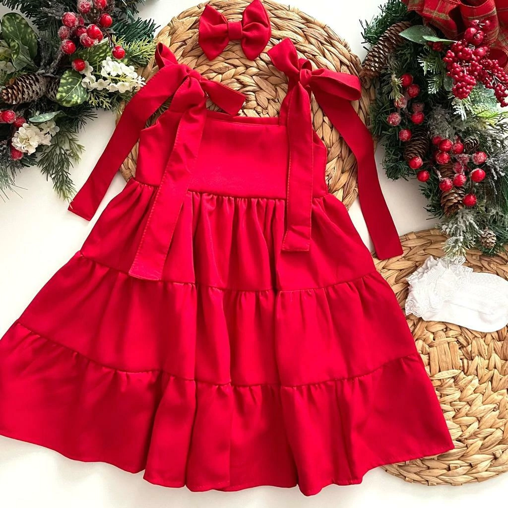 Vestido Luna Vermelho Alfaiataria (Acompanha laço de cabelo)
